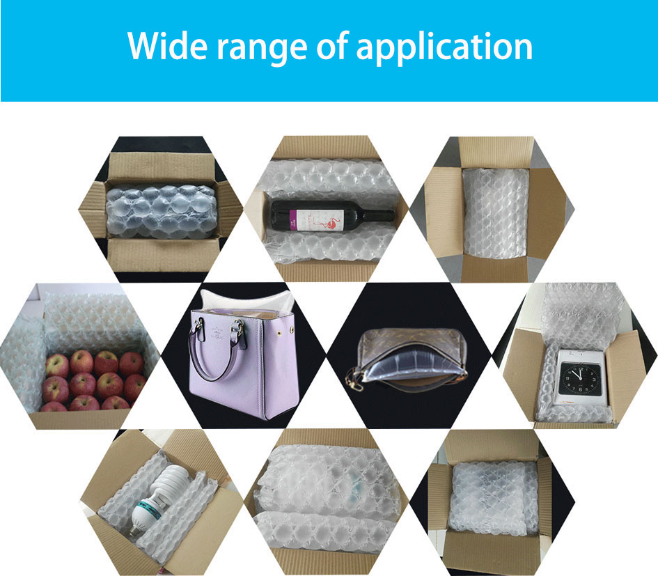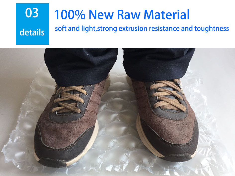 Túi khí được thiết kế với bóng khí to đường kính 2.5-3.5cm. Với lượng khí được bơm vào bằng máy trước khi đóng hàng, Vật liệu túi khí là PP; PP&PE....