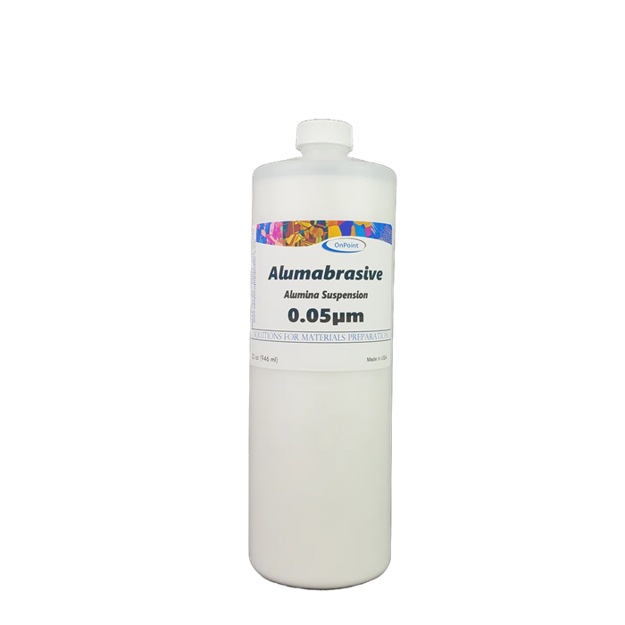 Alumabrasive Alumina Suspension is an ideal water-based polishing agent for soft materials such as copper, aluminum, and lead. It comes in a 32oz container and features an abrasive particle size of 0.05 µm for a consistent, precision finish.