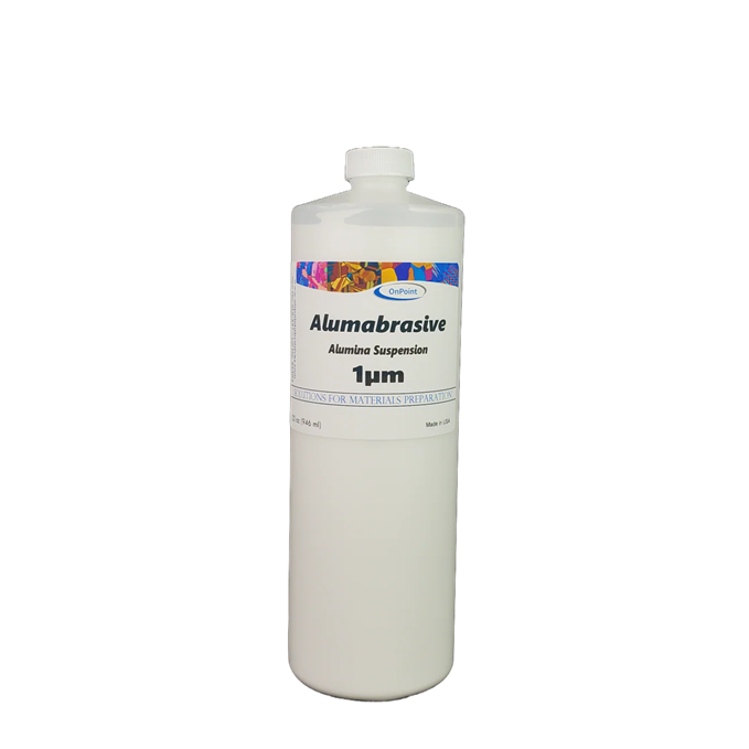 Alumabrasive Alumina Suspension is an ideal water-based polishing agent for soft materials such as copper, aluminum, and lead. It comes in a 32oz container and features an abrasive particle size of 1 µm for a consistent, precision finish.
